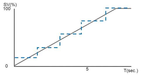 ランプ制御は、たとえば温調器において、ある一定の速度で徐々に温度を上げるときなどに使われています。